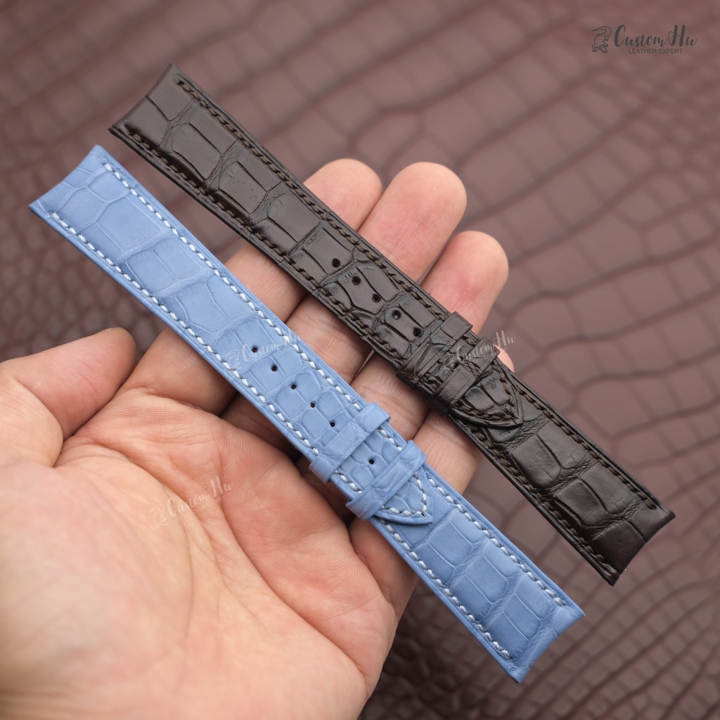 The leather used for the strap is American alligator alligator skin common Mississippi alligator and Louisiana alligator are American alligator. When making high-end watch straps, we always insist on using French tanned alligator skin for 90% of our original watch straps.